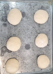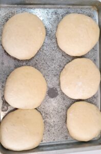 4. Flatten the Buns: Use the palm of your hand to flatten each dough ball until it is about 3 inches in diameter.