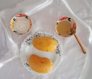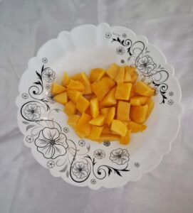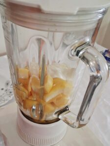1. Slice and peel your mangoes, then toss the juicy flesh into a blender.