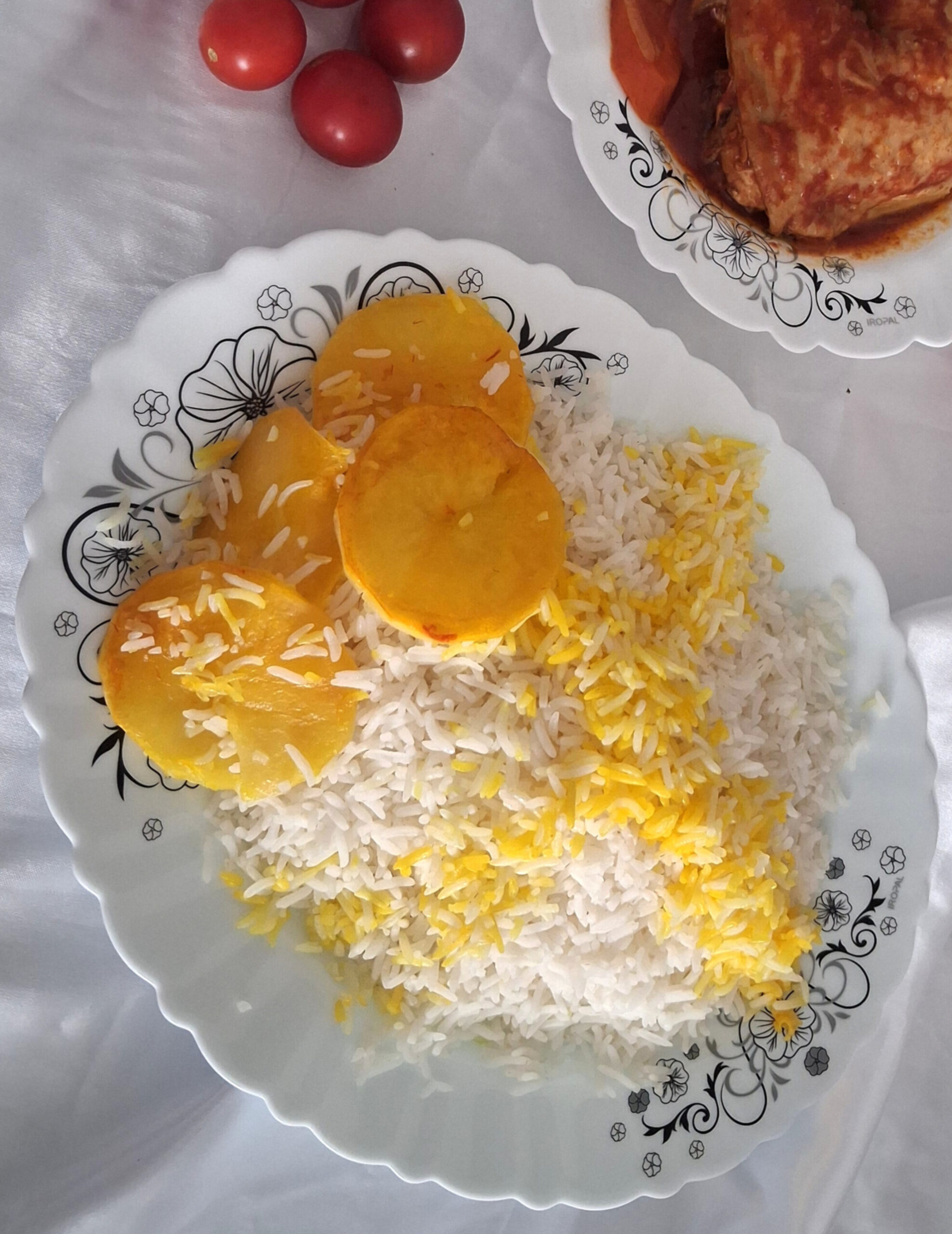 – Potato slices or flatbread (optional, for tahdig/crust)