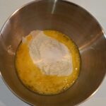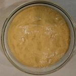 • Make a well in the center of the dry mixture, add the activated yeast, and then pour in the egg and milk mixture.